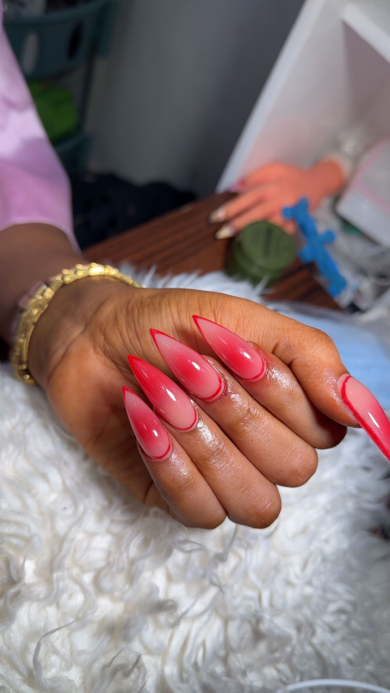 Stiletto Nail Extensions – Red Ombré Design and Thin Outline | Acheter chez Smart Glams Luxury Hair | Marketplace