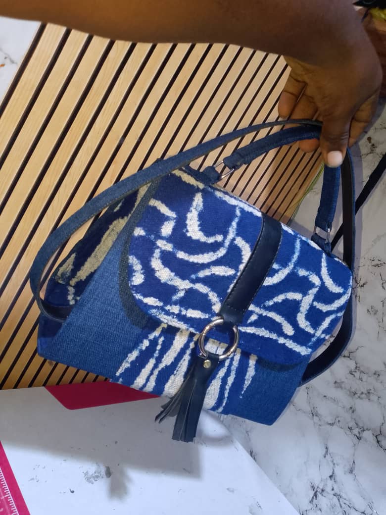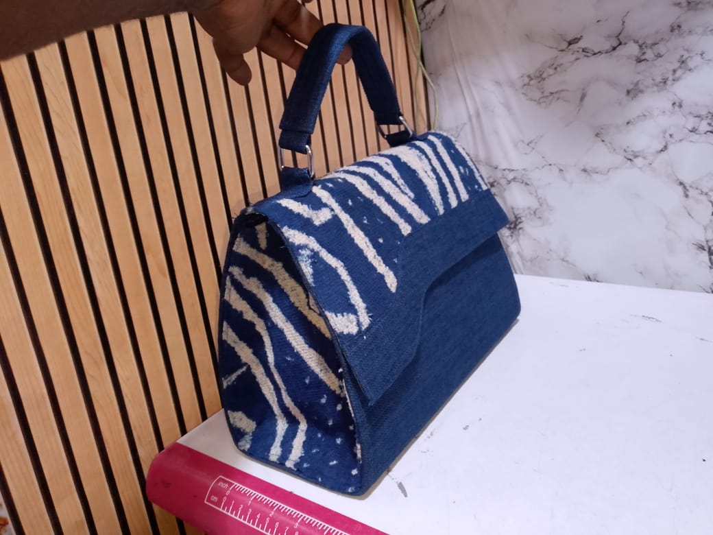 Handmade "Blue Batik" Handbag – Indigo Texture & Leather Details