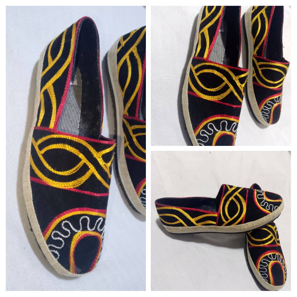 Embroidered "Tribal Gold" Moccasins – Black & Colorful Embroidery