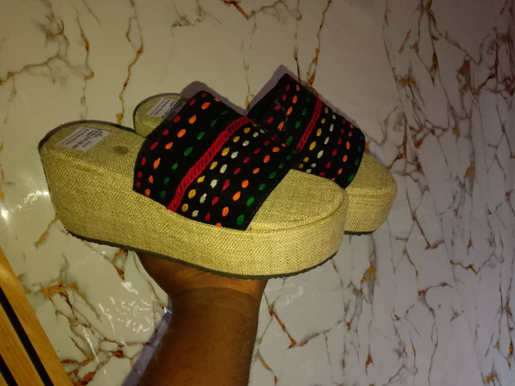 "Color Dots" Platform Sandals – Embroidered Fabric & Natural Raffia