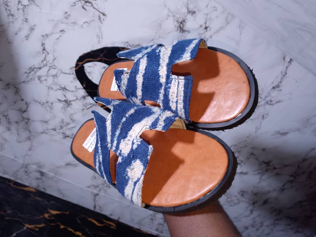 "Batik Comfort" Cross Sandals – Indigo Fabric & Embellished Sole