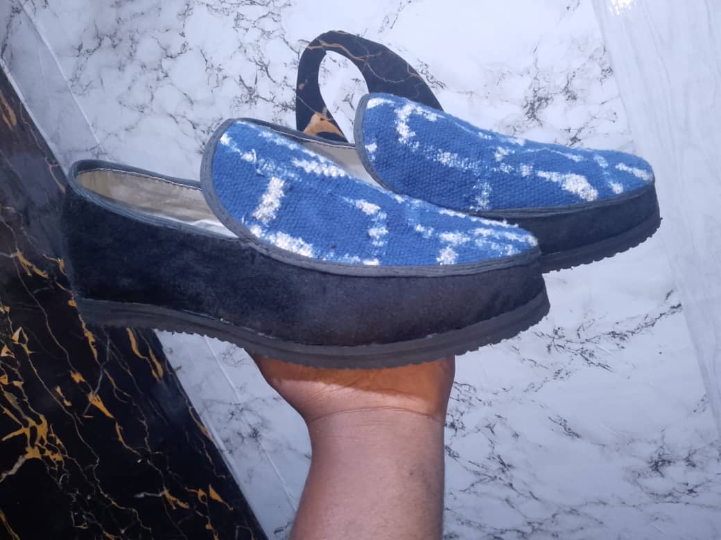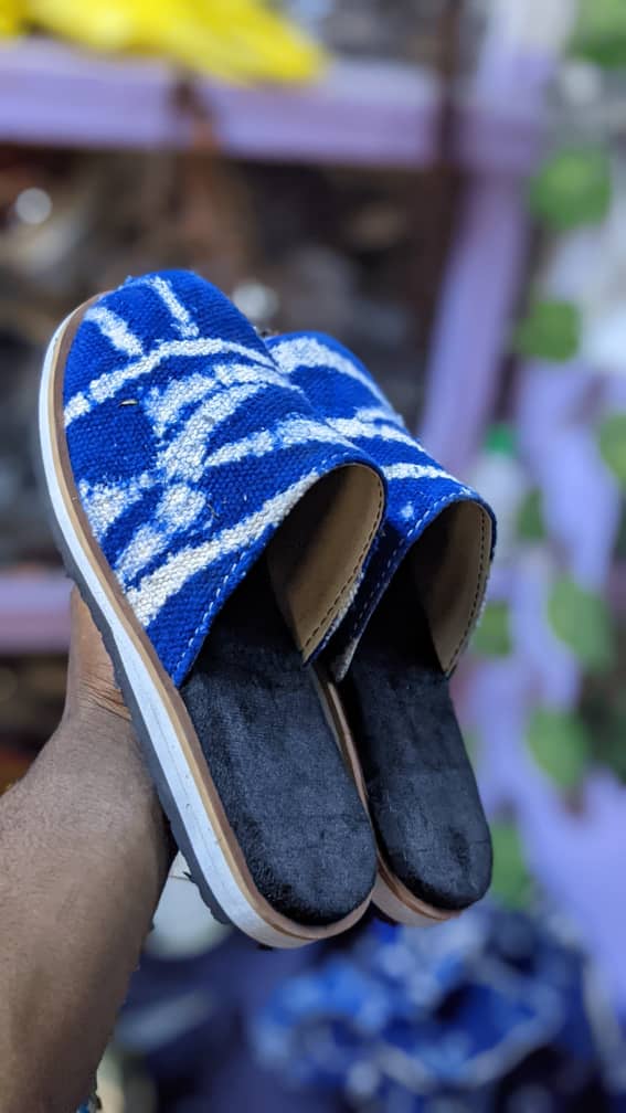"Batik Relax" Flat Mules – Indigo Fabric & Velvet Sole