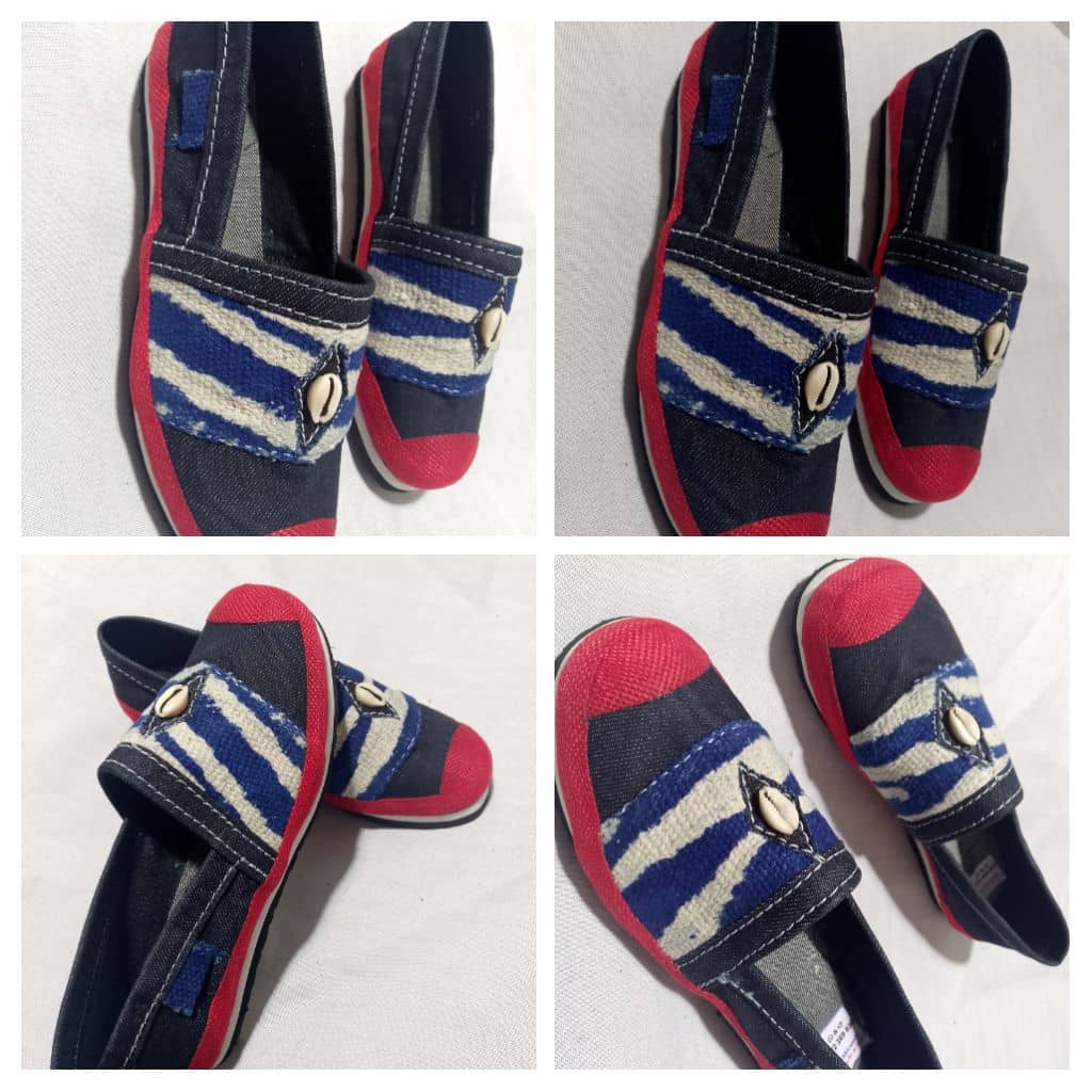 "Cowrie Spirit" Canvas Moccasins – Cowrie Shell Details & Red Accents